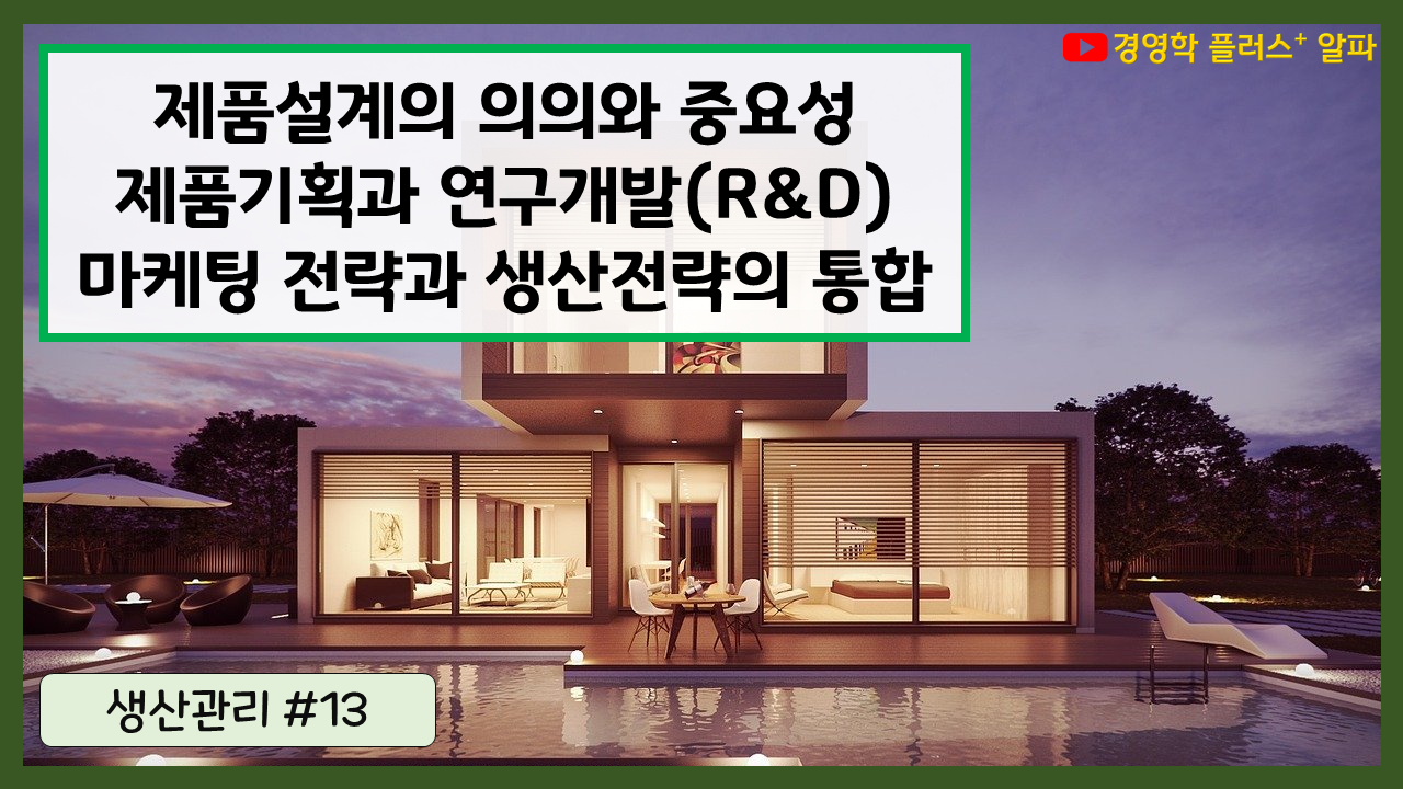 | 생산관리 #13 - 제품설계의 의의와 중요성, 제품기획과 연구개발(R&D), 마케팅 전략과 생산전략의 통합 (0) | 2021.01.25 |