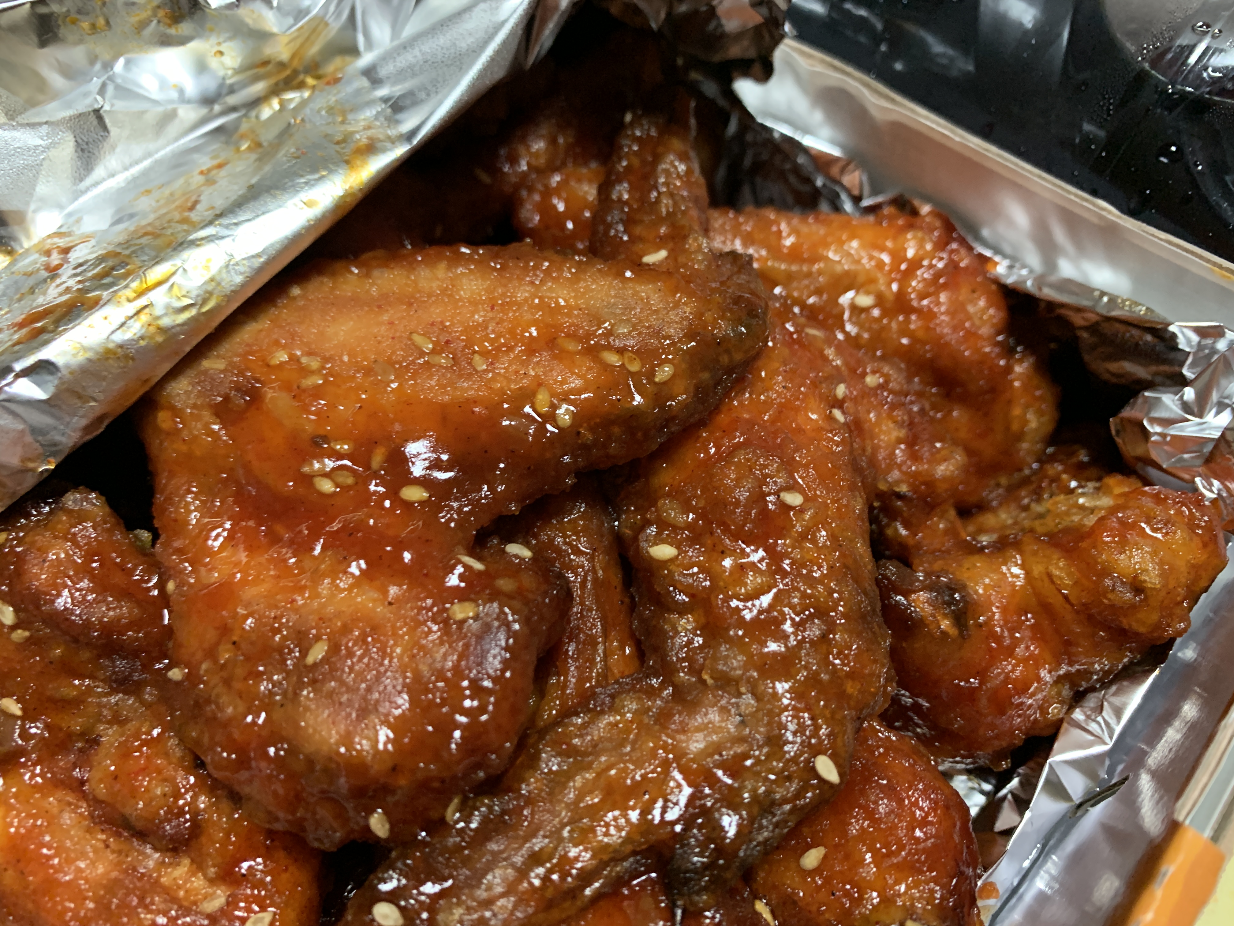 오~바삭치킨(달콤양념 치킨)도 한마리 추가 주문했습니다.