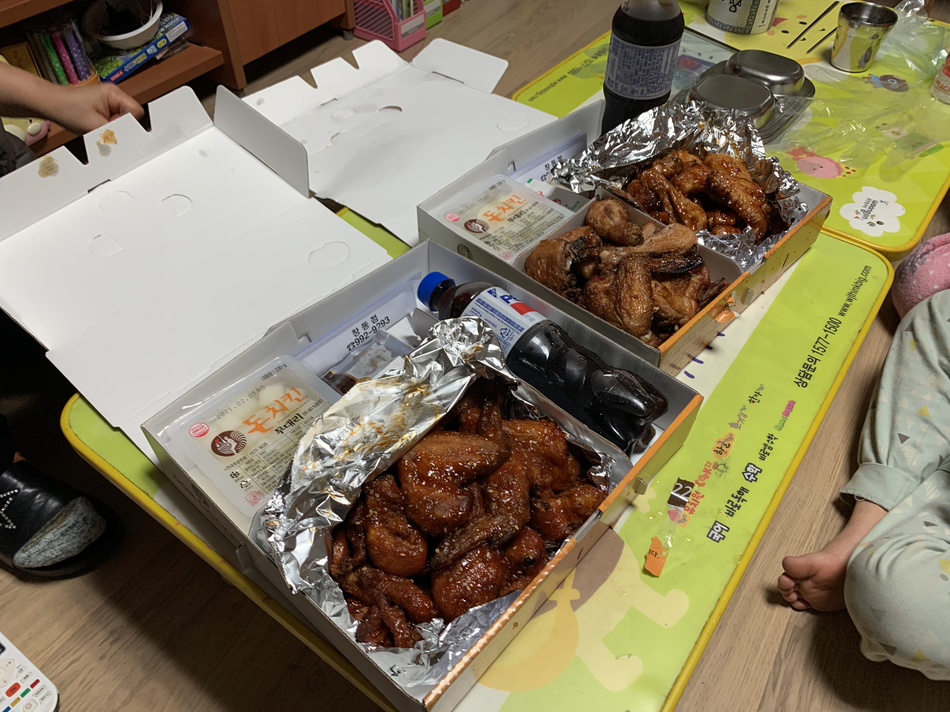 아이들과 함께 즐긴 불금 치킨 세마리 파티는 여기서 끝이에요.